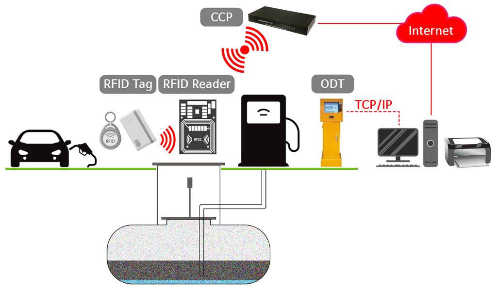 The purpose is to set up the effective fuel management system through the efficient fuel control process by setting up unmanned fuel management system with RFID technology in the fuel storage facility for a trucking company, heavy construction equipment operation, marina, airport, oil companies.